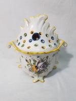 MOUSTIERS - bouquetière en faïence à décor floral de grand feu - XVIIIème - H. 25.5 cm - (petites restaurations au col et au pieds)