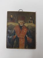 Icône de Saint Nicolas le Thaumaturge - Peinture sur bois - Russie, XIXème - H. 11 x L. 9 cm - (légères usures) - Expert : Maxime CHARRON