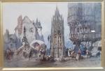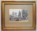 Dans le goût de Paul BRADDON - Place néogothique - Aquarelle portant une signature en bas à gauche Paul MARIN (?) - 20 x 30.5 cm à vue