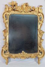 Glace à parcloses, cadre en bois sculpté et doré à décor de branches de chêne et de fleurs - époque Louis XV - H. 103,5 x L. 73 cm - (redoré, accidents, manques et restaurations)