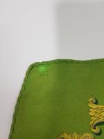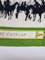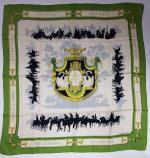 HERMES - "Les bois de Boulogne" - carré en soie à décor animé sur fond beige - bordure verte - (bouletage repassé - rapiécé dans un angle...)