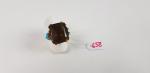 Importante bague en or jaune 750e ornée d'un quartz fumé, taillé à pans coupés (18.3x16.611.8mm) sur monture ornée de turquoises cabochon aux épaulements - TDD 54 - Poids brut : 13g