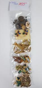 Lot de divers bijoux fantaisie, principalement des broches, médailles, clips d'oreilles