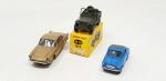 DINKY FRANCE, 3 modèles : Réf 543 Renault Floride bronze B+.o réf 24L Vespa 400 bleu/gris B+.o réf 80BP Jeep (manque conducteur) B+.c+