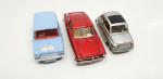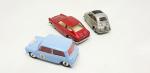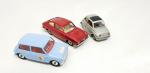 3 modèles : MERCURY Fiat 850 coupé rubis métallisé A.o, MEBETOYS Fiat 500L gris argent B.o CORGI TOYS Mini Minor issue d'un jeu C+.o