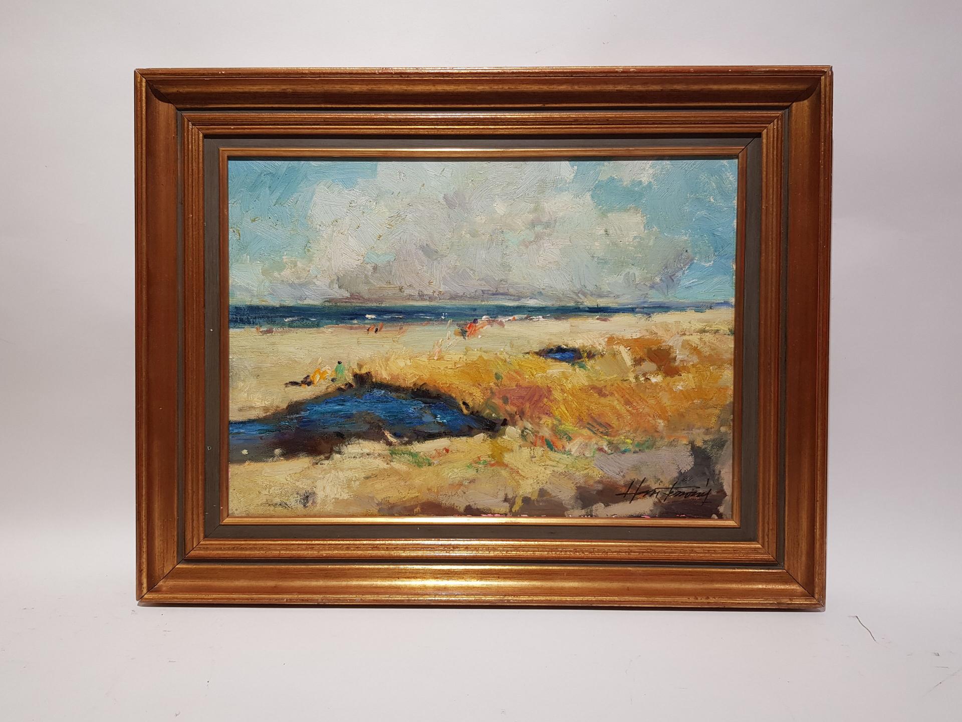 Hervé FENOUIL (1936) - Plage de Sète - Huile sur toile signée en bas à droite et titrée au dos - 33 x 47 cm