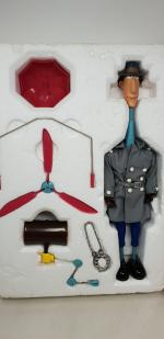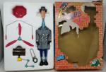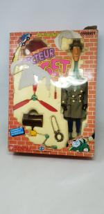 BANDAI - INSPECTEUR GADGET (1983) , grande poupée à systèmes, H : 36cm, en boite format 42 x 30 x 8,5 cm - déchirures et manques - poupée en bon état présumée complète, non testée