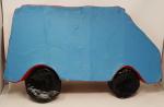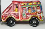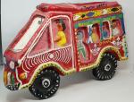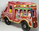 ARTISANAT d'HAITI (v.1980) grand autobus en papier maché en demi ronde bosse, L : 66cm, rare objet d'art populaire découvert à Port-au-Prince
