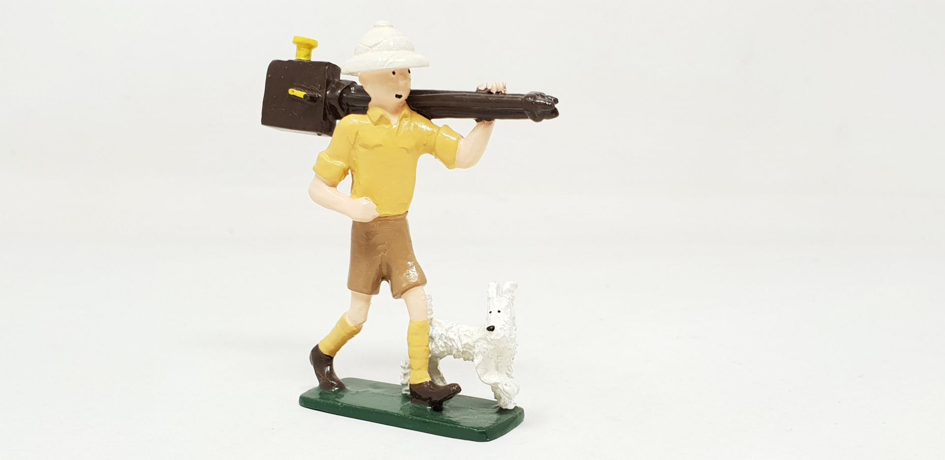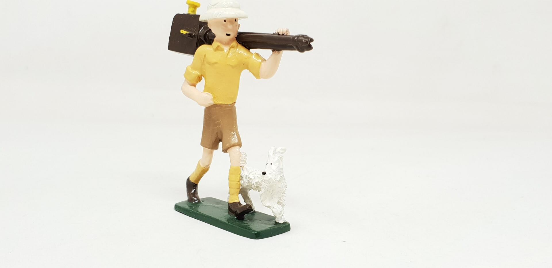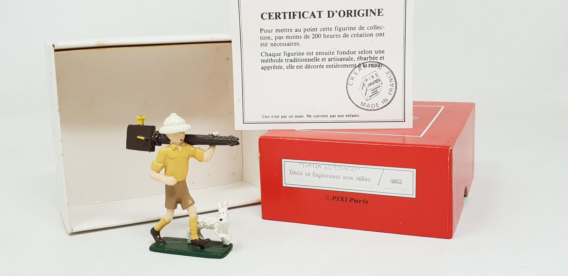 PIXI (Paris, plomb peint, 1990) réf 4503, série TINTIN AU CONGO, figurine "Tintin en explorateur avec Milou", H : 6.2 cm avec boîte et certificat non numéroté