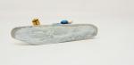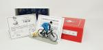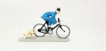 PIXI (Paris, plomb peint, 1990) réf 4524, série LE LOTUS BLEU , figurine "Tintin en vélo et Milou", Long : 9.6 cm avec boîte et certificat n° 984