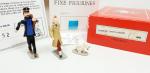PIXI (Paris, plomb peint, 1988) réf 4583, série LES AVENTURES DE TINTIN, trois figurines "Haddock, Tintin et Milou", H : 5.9, 4.7 et 1.5 cm avec boîte et certificat n° 352 (choc sur la boîte)