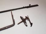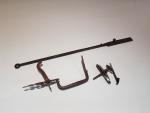 Clenche avec poignée et mentonnet en fer forgé - XVIIIème - on y joint une autre poignée de clenche plus grande de même époque - L. 64 cm - (état d'usage)