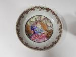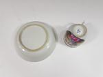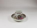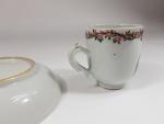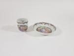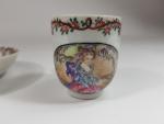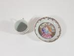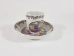 Tasse et sa sous tasse en porcelaine à décor jeune femme au piano - dans le goût de la Compagnie des Indes, circa 1900 - (petit éclat à la tasse et léger fêle à la sous tasse)