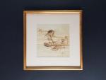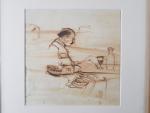 Armand COUSSENS (1881-1935), attribué à - Officier lisant en terrasse - Dessin d'étude à la plume non signé - 15,5 x 15,5 cm à vue - (tâches d'humidité et papier gondolé)