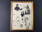Armand COUSSENS (1881-1935), attribué à - Études de caricatures de Monsieur de Bougrelon - Dessin au crayon, à la plume et au lavis avec projet au verso - 31,5 x 24,5 cm