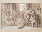 Ecole française du XVIIème - Saint Paul prêchant à Athènes - Plume et encre brune - H. 29 x L. 46 cm - (piqures) - Expert : Cabinet DE BAYSER