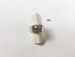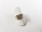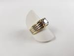 Bague demi-jonc en or jaune 14kt ornée en serti-griffes d'un diamant de taille brillant de 1.2 carat environ (7.2x3.7mm) sur monture à décor rainuré - TDD 53 - Poids brut : 9g50 - (choc au rondiste) - couleur présumée : H - pureté présumée : Si1