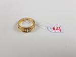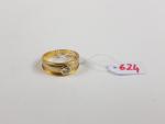 Bague demi-jonc deux ors 750e ornée en serti-clos d'un diamants de taille brillant de 0.16ct environ - TDD 53 - l. 7mm - Poids brut : 3g50
