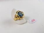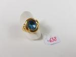 Bague en or jaune 750e ornée en serti-clos d'une topaze bleue - TDD 56 - Dim. plateau : 16.6x17.6mm - Poids brut : 12g20