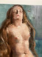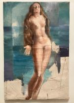 Laszlo Ney dit LANCELOT-NEY (1900-1965) - Amphitrite - Esquisse à l'huile sur toile signée, datée et localisée "Prades 1942" en bas à gauche - H. 57,5 x L. 38 cm - (toile froissée et redimensionnée, réseau de craquelures, perforations et manques)