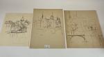 Laszlo Ney dit LANCELOT-NEY (1900-1965), attribué à - Paysages parisiens - Trois dessins à la plume, non signés - de H. 31 x L. 24 cm à H. 35,5 x L. 29,5 cm