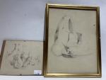 Laszlo Ney dit LANCELOT-NEY (1900-1965), attribué à - Natures mortes - Deux dessins à la plume et au graphite, l'un daté "7.9.57" (?) et l'autre identifié par Yvonne Ney au verso, non signés - H. 18 x L. 21 cm et H. 34 x L. 26 cm - (l'un troué)