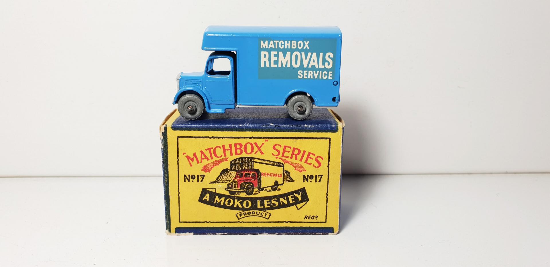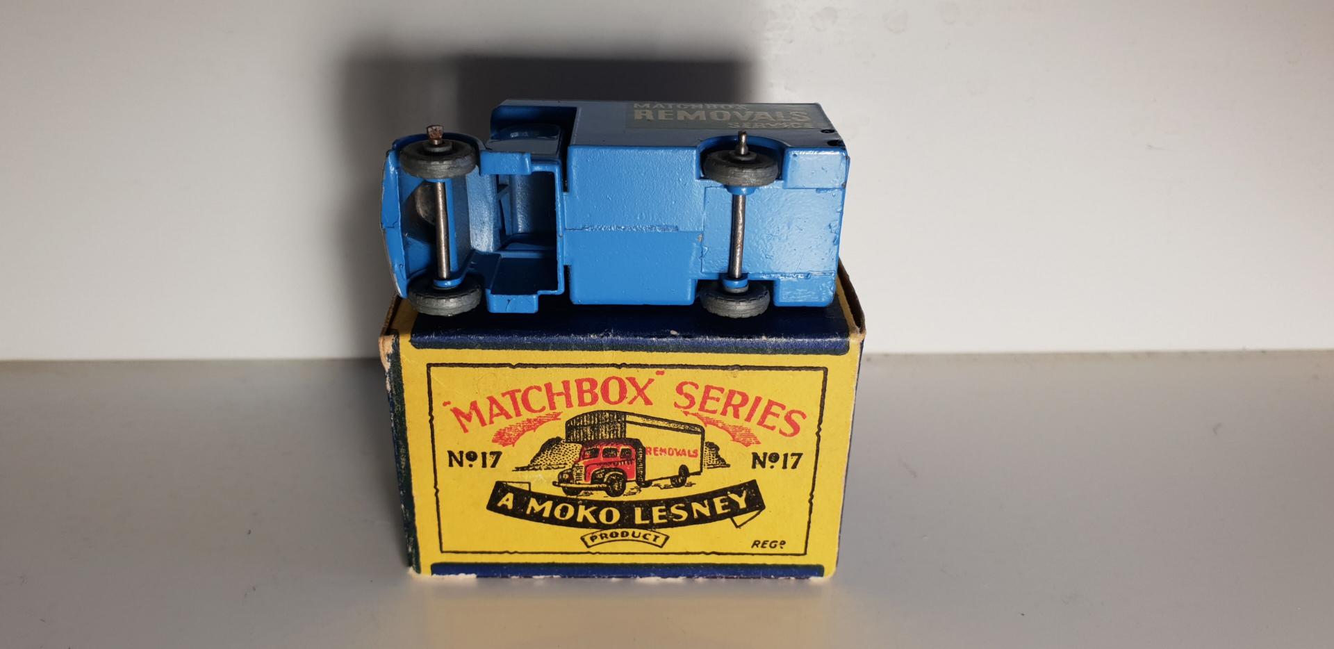 LESNEY-MATCHBOX réf 17a2 Bedford MATCHBOX REMOVALS SERVICE, bleu azur, boite 1b, état A.b