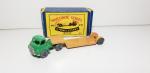 LESNEY MATCHBOX réf 27b1 Bedford low loader vert/chamois, roues zamac, 2ème modèle plus grand, L : 9,5 cm, boite 1e (spécifique, plus grande que celle du 27a), état A.c+