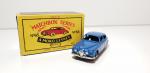 LESNEY MATCHBOX réf 65a2 Jaguar 3,4 litre (Mk1) bleu foncé opaque, roues plastique gris sur axes pincés, boite 1g, état A.b