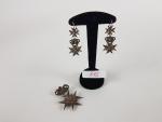 Parure en argent bas-titre composée : d'un pendentif et d'une paire de pendants d'oreilles - à décor de croix de Malte et couronne en filigranes - époque XIXème - Dim. pendentif : 48x33mm - Dim. boucles d'oreilles : 48x22mm