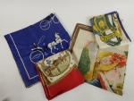 On y joint un lot de 4 foulards en soie (anonymes et une reproduction d'un tableau de Renoir)