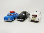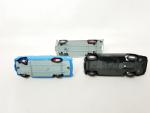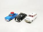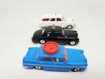 CORGI TOYS, 3 modèles de services publics : Ford Zodiac police B+.o (finitions ajoûtées) Rilley Pathfinder police A.o, Austin A50 Motor School bleu (volant à gauche) A;o