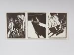 José PIRÈS (1955-2020) - Triptyque Toros - 28,7 x 63,6 cm- Estampe signée au crayon en bas à droite - (sans cadre, tache)