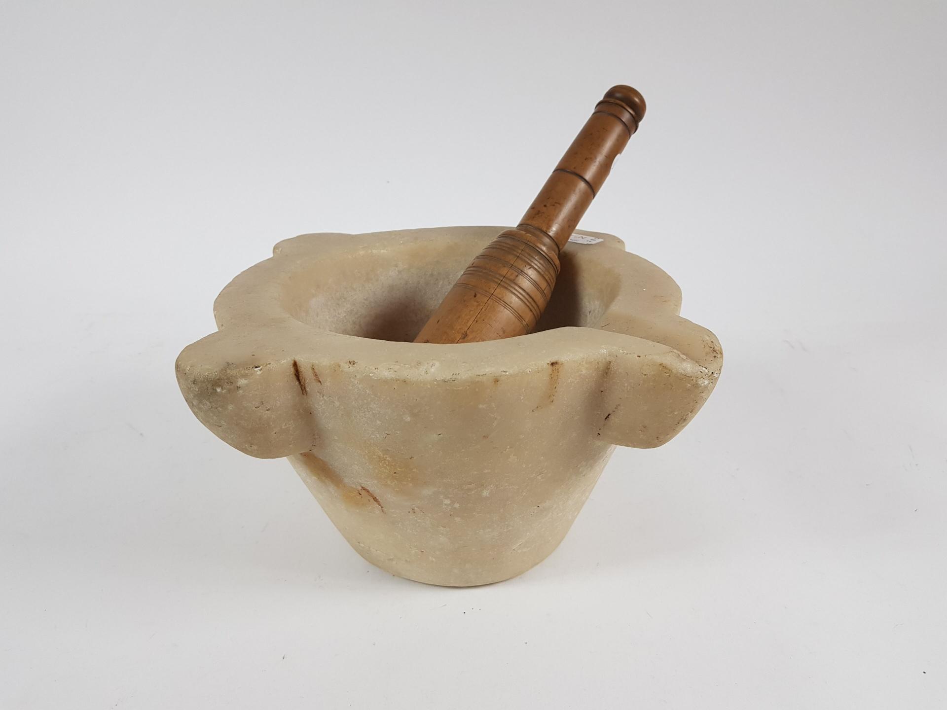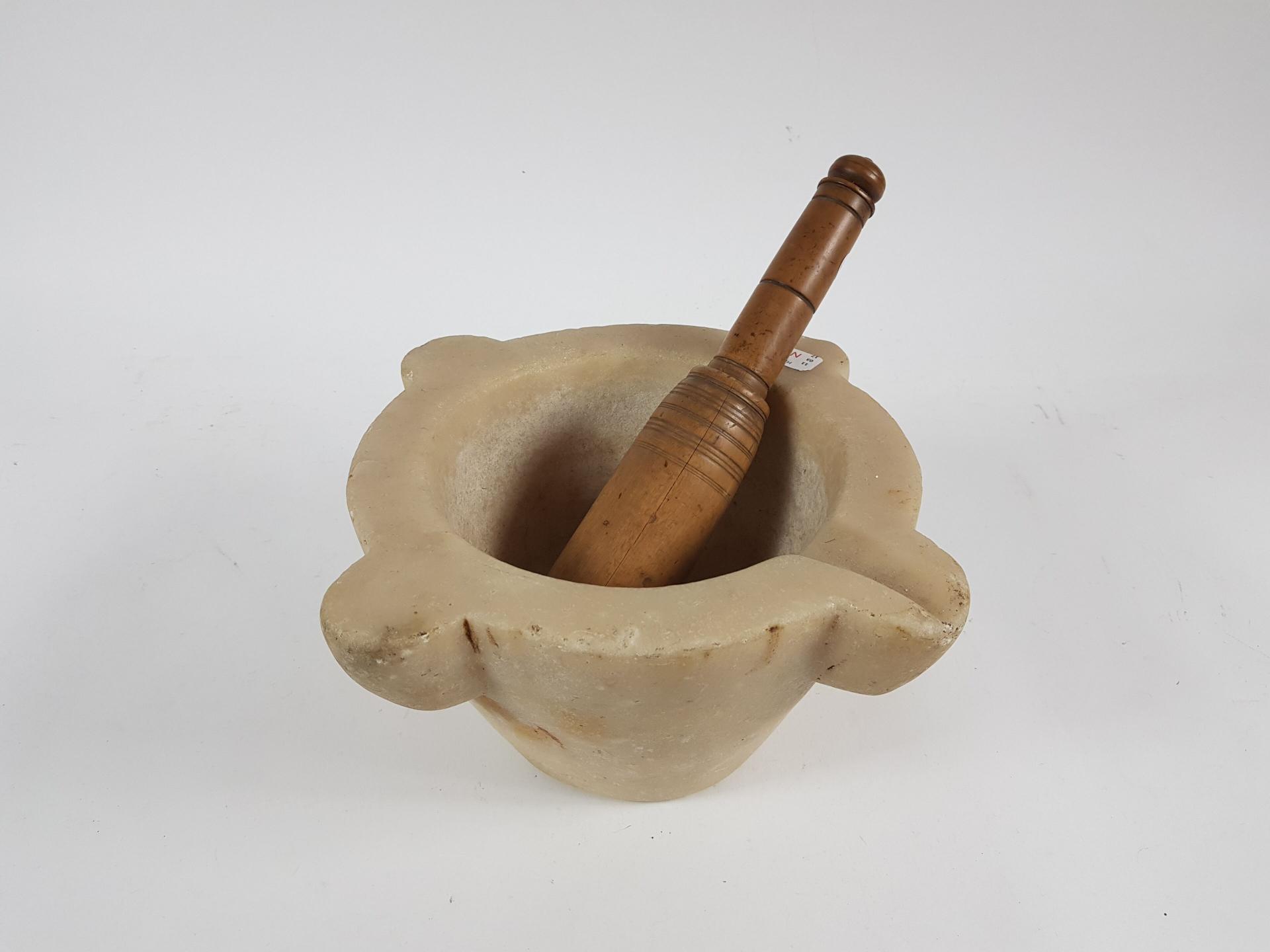 Mortier en marbre et son pilon en bois tourné - Fin XIXème - H. 16 x D. 30cm