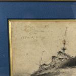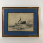 Peintre de marine XXème - "Le Croiseur cuirassé Le Geydon" - Dessin au graphite monogrammé "J. D" - 19 x 26 cm - (rousseurs)