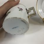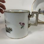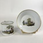 Tasse et sa sous-tasse à décor de paysage animé au cheval et chaumière, anse à l'antique - Meissen, fin XVIIIème - Diam. 13,5 cm - H. 6 cm