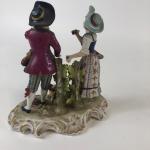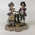 Sujet galant représentant un couple mangeant du raisin en porcelaine allemande - H. 16 cm - (usures de dorure)