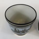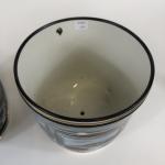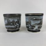 * Paire de cache-pots en porcelaine à décor tournant paysagé en grisaille - Début XXème - H. 17 cm - (usures de décor)