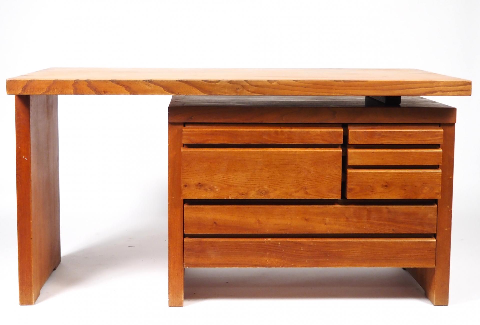 Bureau à caisson années 70 en orme massif, trois tiroirs