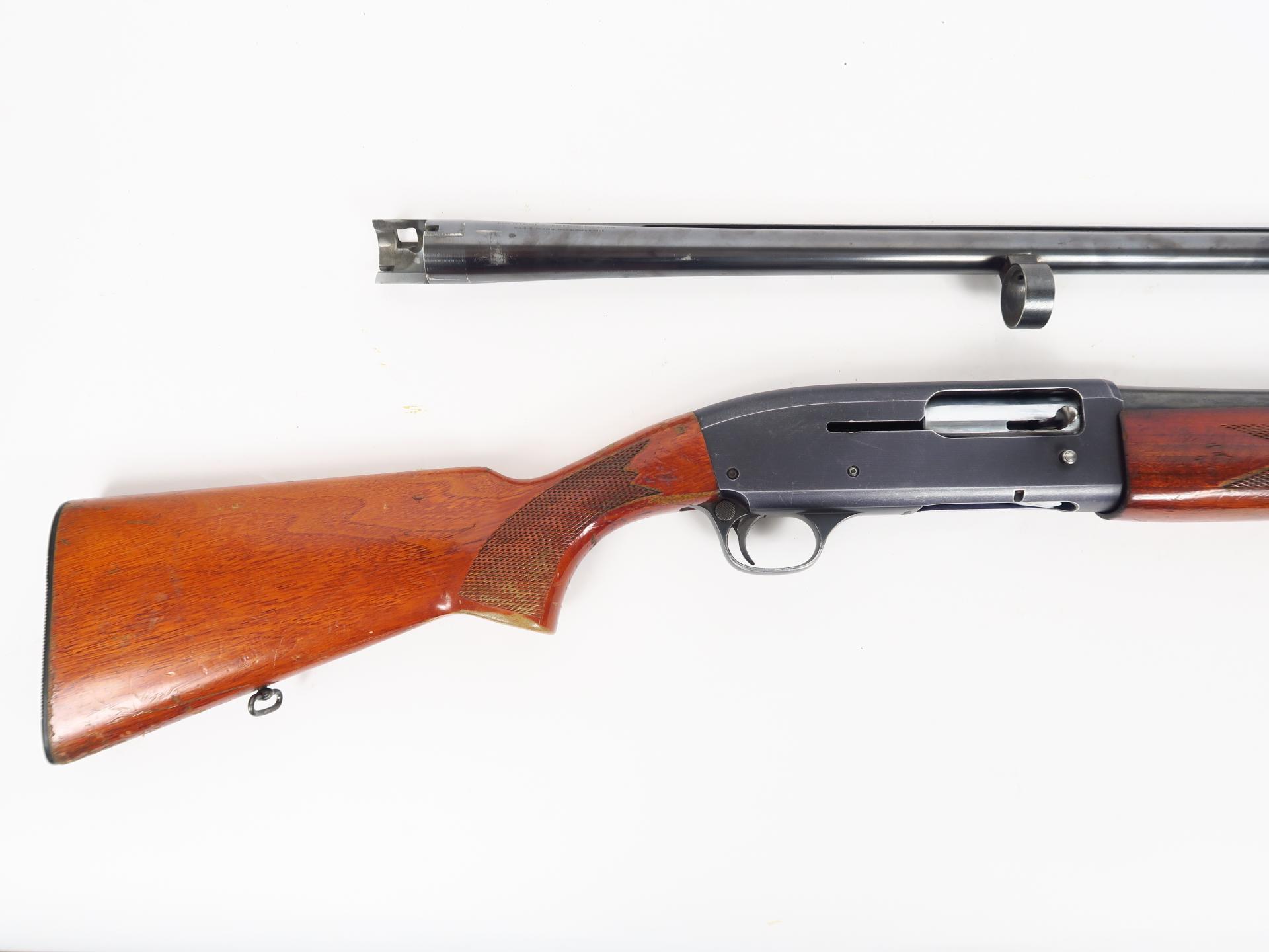 Fusil semi-automatique " Perfex " de Manufrance calibre 12/70 arme nr : 124631 avec deux canons de 650mm et 710mm (le plus long a une bande de visée) (canons nr : 137793 et 219423). Mécanisme fonctionnel à vide. Crosse demi pistolet en noyer quadrillé à la presse. . (1-).Arme de catégorie" C »
