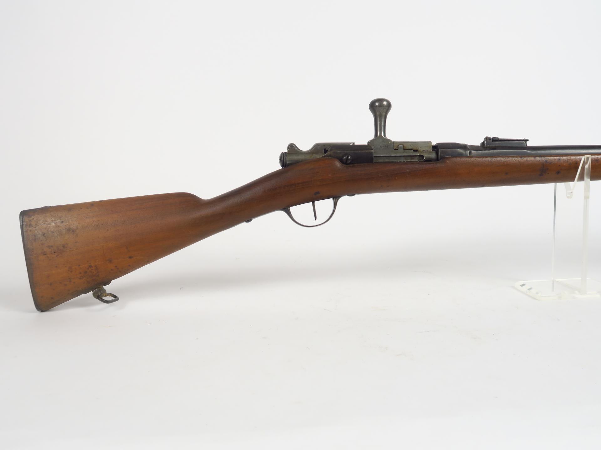 Fusil Gras de cadet calibre 11 mm Gras cadet, arme numéro B 9179. Canon daté "T 1881", mécanisme fonctionnel, arme livrée avec sa baguette. Catégorie D. (1-)