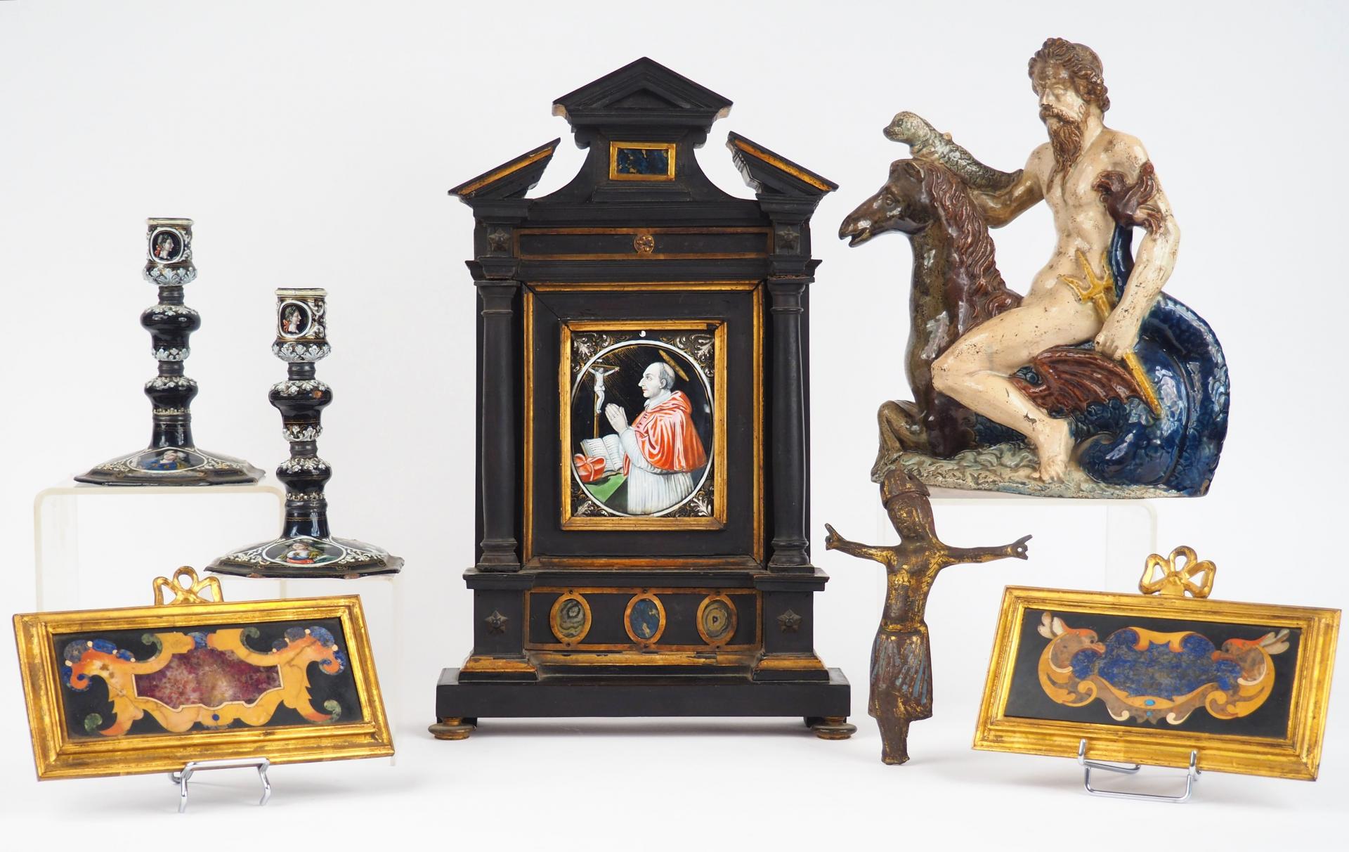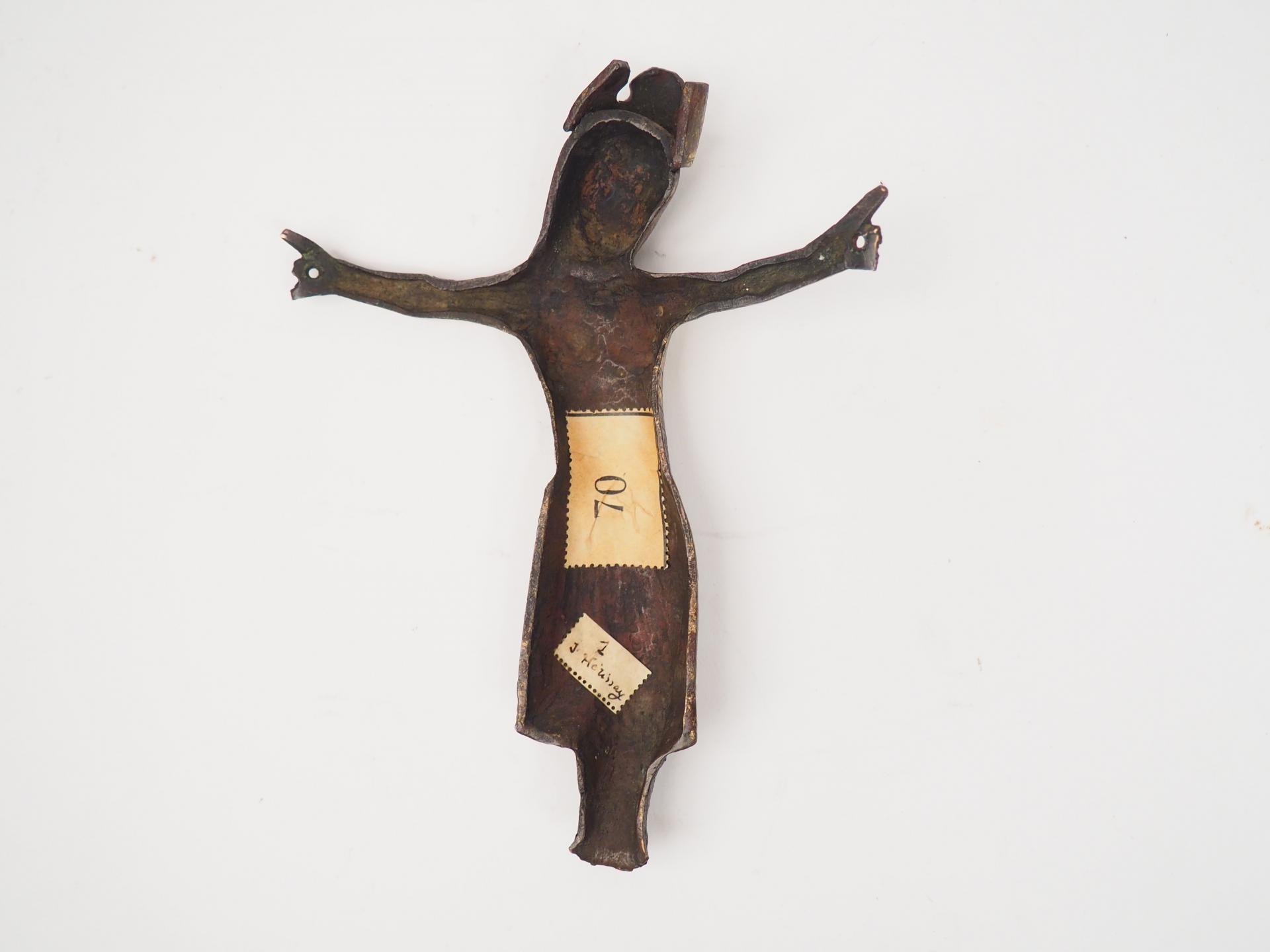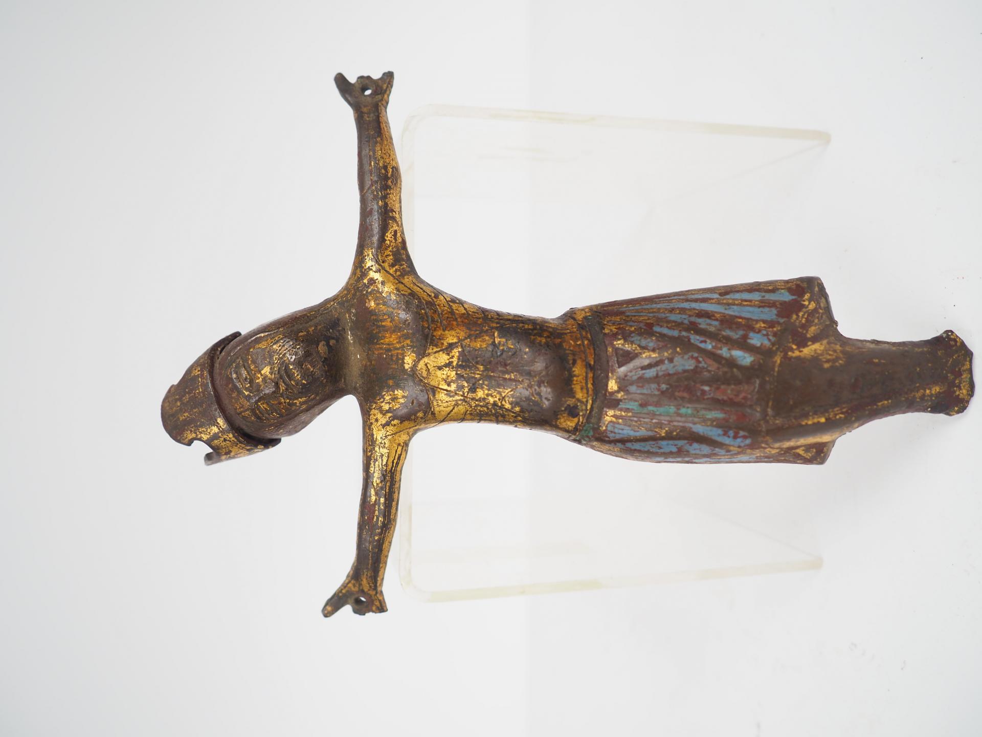 Christ d'applique en cuivre champlevé, émaillé et doré, émail bleu.