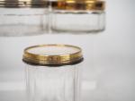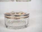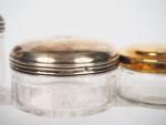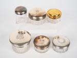 Six différentes boites de toilette en cristal et argent dont quatre à décor de monogramme.