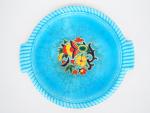 LONGWY. Dessous de plat en émaux polychromes à décor de fleurs.