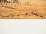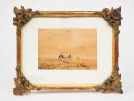 Louis-Amable CRAPELET. "Méharistes dans le désert" Aquarelle, signée en bas à gauche. Dim. 9 x 13.5 cm