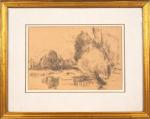 Maximilien LUCE. "paysage" Dessin au crayon, signé en bas à gauche Dim. 18 x 26,5 cm