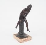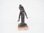 Sculpture en bronze à patine brune, sur un socle en marbre.