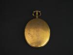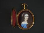 Miniature sur porcelaine "jeune femme à l'éventail" dans un étui en métal doré.
