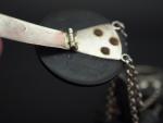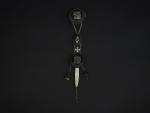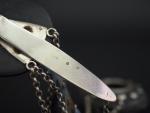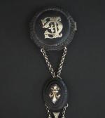 MERICANTE Fils à Toulouse. Chatelaine en argent et bois sculpté à décor de monogramme, de fleur de lys et de croix de malte. Dim. 16 x 5 cm.