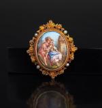Broche de style Louis XVI en or jaune, sertie en son centre d'une miniature figurant deux jeunes amants.